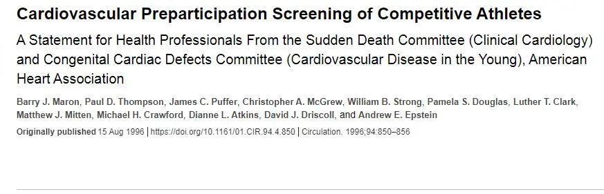 因此,旨在检出隐匿心脏病预防运动相关心跳骤停的体检仅适合于成年职业运动员和学生精英运动员。