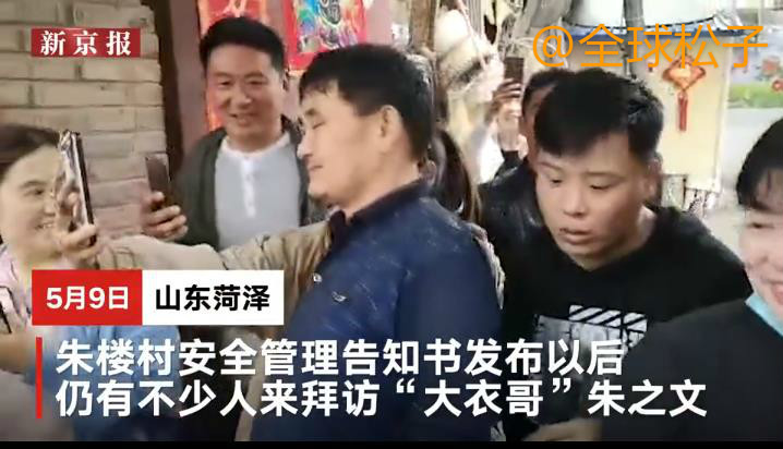 5月10日,新京报《紧急呼叫》发布了一段有关大衣哥朱之文的视频,视频中大衣哥对村中近日张贴的《郭村镇朱楼村安全管理告知书》作出了回应。5月11日,“大衣哥回应叫停围观新规”登上微博热搜第2。