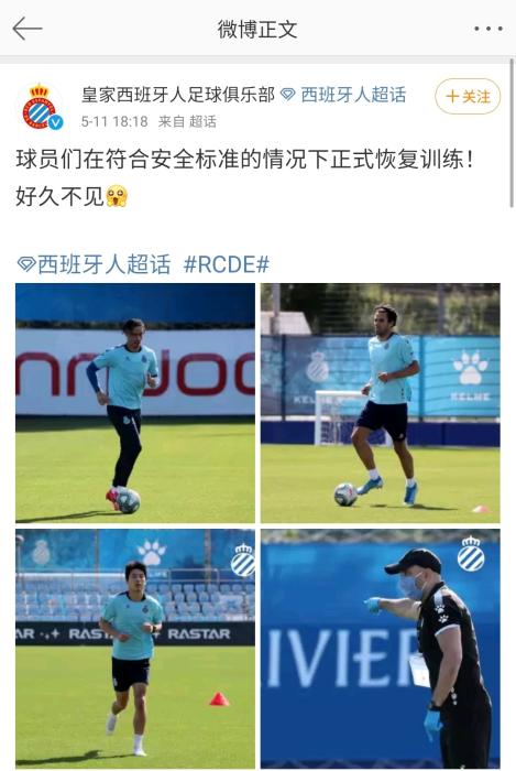 西班牙人官博截图。