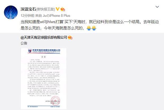 天海的退出也引起了不少专业人士的热议,新快报记者王敌就表示,当我知道是wt与hlws打算“买下”天海时,就已经料到会是这么一个结局。去年延边是怎么死的,今年天海就是怎么死的。