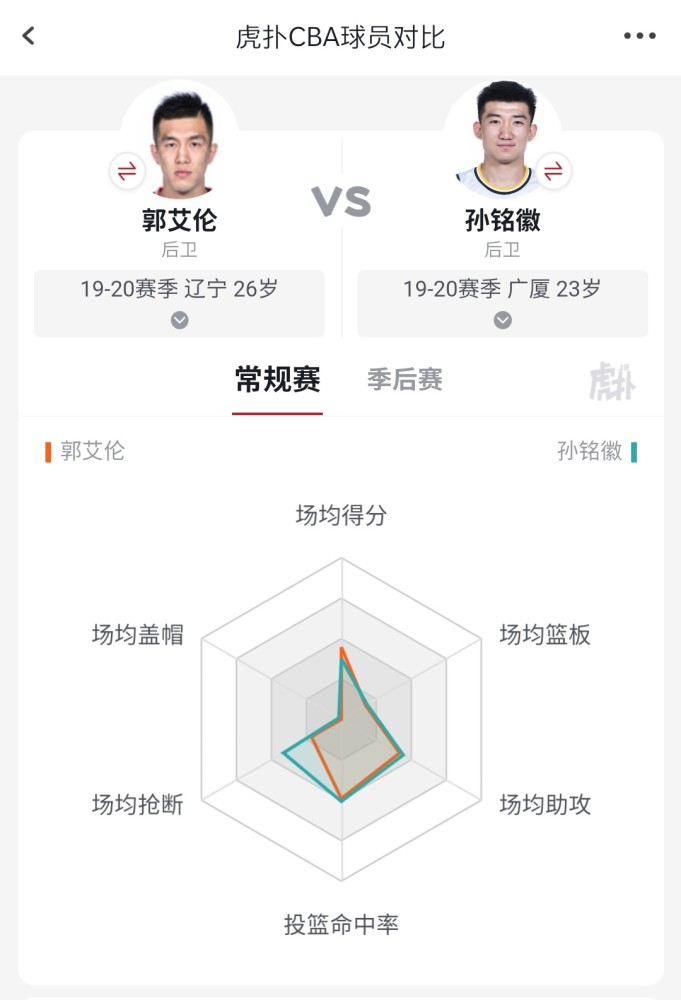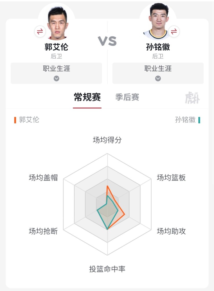 郭艾伦和孙铭徽职业生涯常规赛数据对比