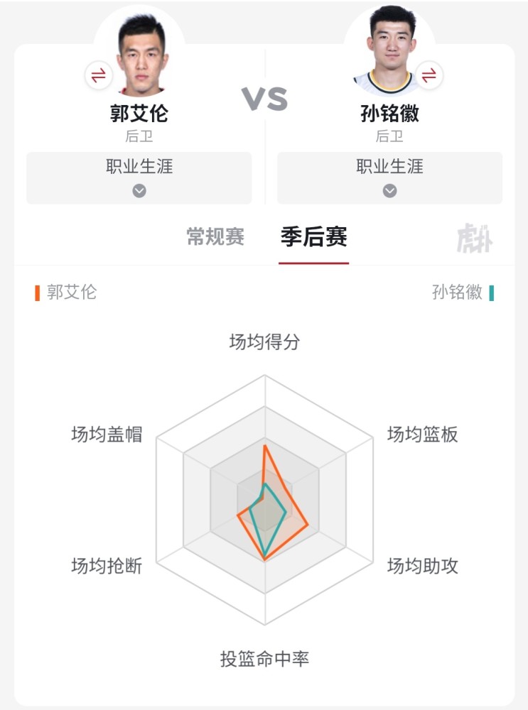 郭艾伦与孙铭徽职业生涯季后赛数据对比