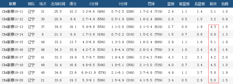 回到联赛后,那真的是上了一个层次,2019-20赛季,场均可以砍下16.2分3.6篮板5.3助攻2.9抢断,一举进入了CBA本土顶级后卫的行列。