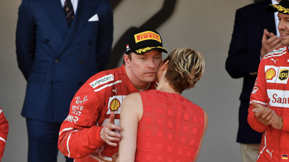 随着2017年增加赛车下压力水平的新规生效,Kimi的状态开始好转――尤其是在摩纳哥,他获得了自2008年法国站以来的第一个杆位。但当他完成一停后,因陷入车阵无法做出好的圈速,最终被后进站的维特尔超越。赛后的领奖台能看出Kimi的失望与郁闷,仿佛自2009年比利时站以来的再一次代表法拉利的分站冠军就被这样被拒绝了。