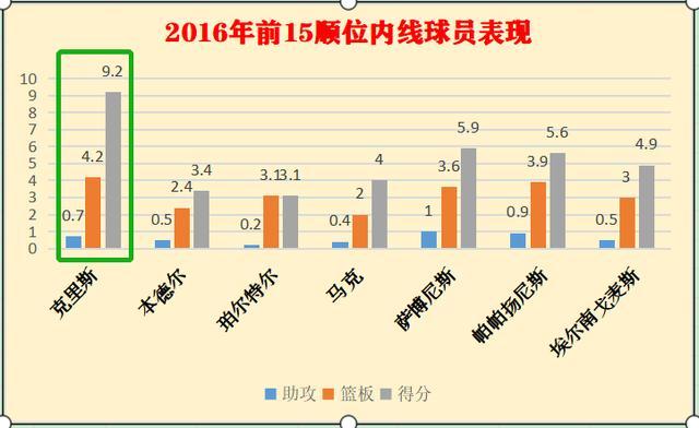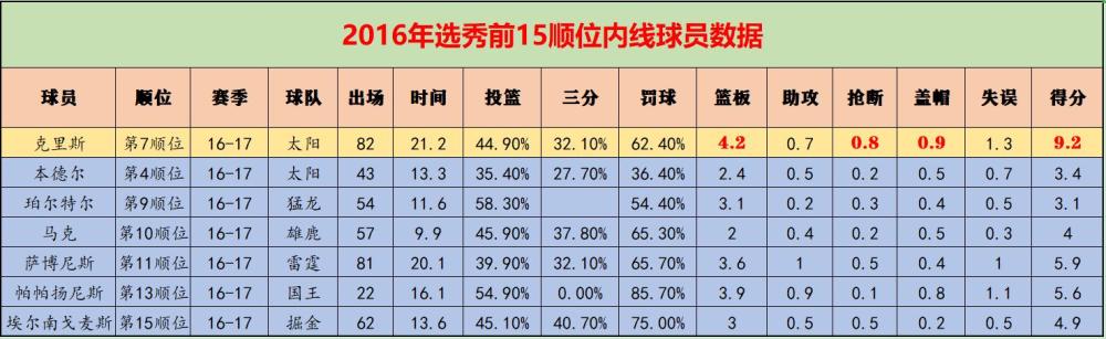 第二,远投能力。为何克里斯会出现在第8顺位,那是因为他是符合小球时代的内线。不过他在NBA打了一年之后,3分远投的潜能并没有开发出来。甚至在第二个赛季还出现了下滑,3分命中率仅有29.5%。他的队内竞争对手本德尔,3分命中率已经暴增至36.6%。