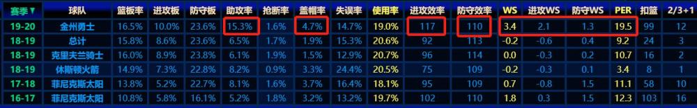 第一,时间有限。在太阳的第2个赛季,场均上场时间21.2分钟,能够贡献7.7分5.5篮板1.2助攻1盖帽。在火箭仅有6.4分钟,个人数据骤降至1.8分1.8篮板。这个数据参考价值不大,我们就忽略不计。