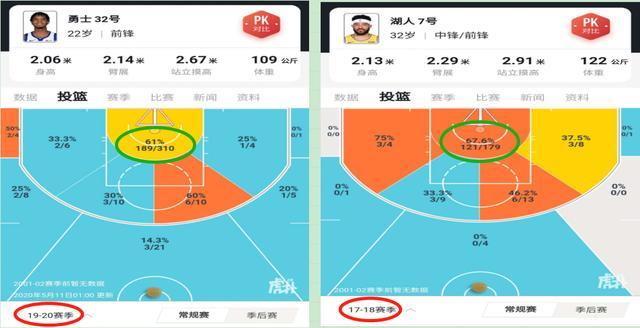 我们选取了19-20赛季的克里斯,17-18赛季的麦基投篮热区图对比。在内线的出手占比上,两个人都达到惊人的80%以上,命中率也都在60%以上,进攻风格非常相像。也许,科尔也正打算把克里斯培养成下一个麦基。还有一点就是,克里斯是具备投篮能力的,在某些时刻或许能够发挥一定作用。本赛季克里斯在勇士打挡拆特别多,麦基当初也是这样的角色定位。可惜的是,麦基只能够往里面跑位,克里斯完全可以拆到外围,寻觅到空位机会,或许就是一记致命的3分球。