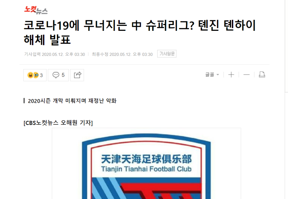 天津天海官宣解散,成为中国足坛的又一悲剧性事情,中超联赛也遭遇打击。韩国媒体对天海解散一事也进行了关注,他们认为此次疫情是压垮天海的最后一根稻草。此外,韩国网友在新闻的评论区中,嘲讽中超“根基不牢固,像一盘散沙”。