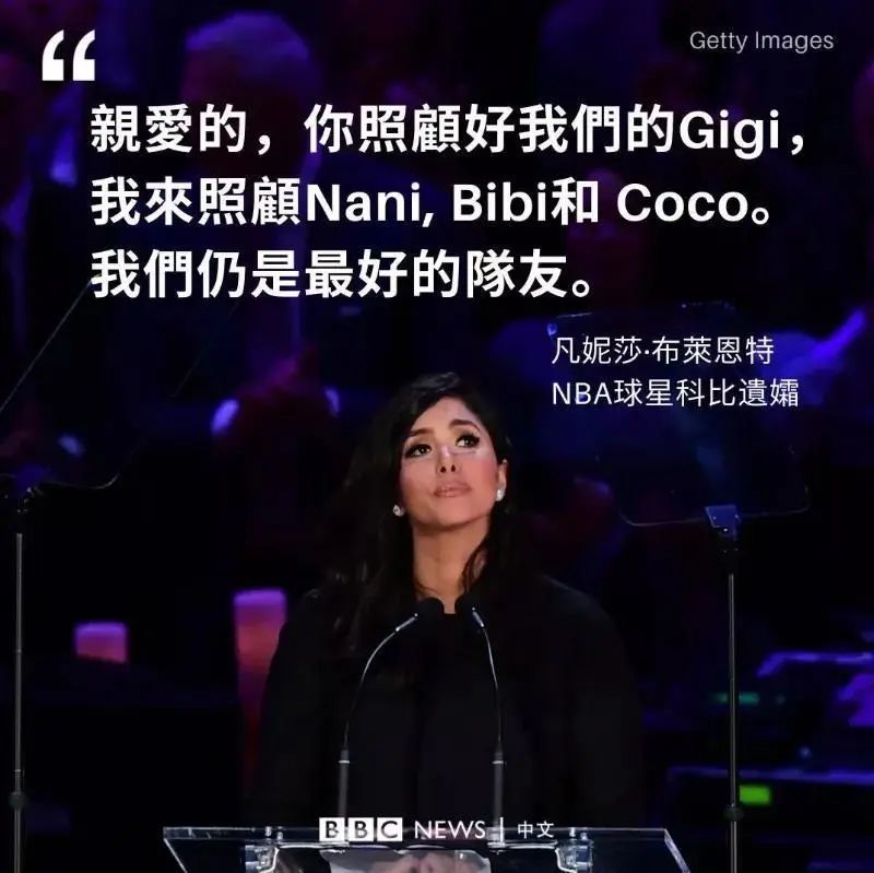 在之前洛杉矶湖人为追忆科比而开的追悼会上她出席了,那也是科比的妻子瓦妮莎也是在科比遇难之后,首次出现在公众视野当中