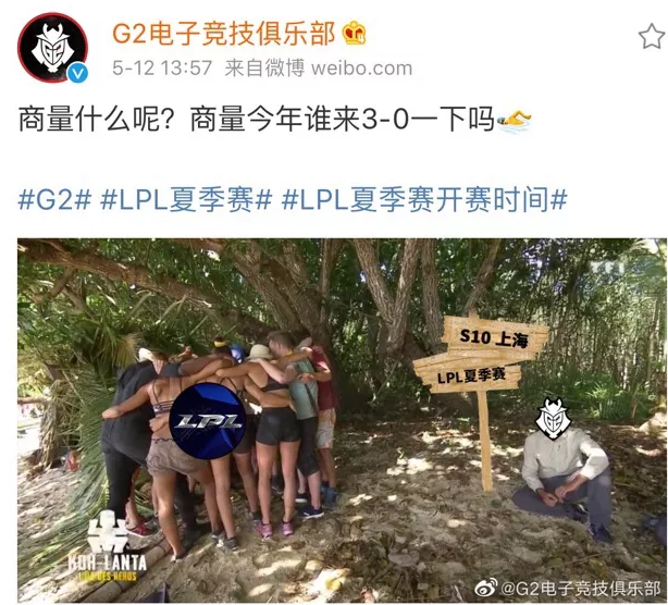 关注这只队伍的观众应该知道这只队伍非常喜欢整活,常常会整一些视频或者图片来调侃其他战队,甚至经常会自黑。就在最近两天G2又开始整活自黑了,他们的官方微博更新了一组照片并配文:LPL在商量什么呢?商量今年谁来3-0一下吗?