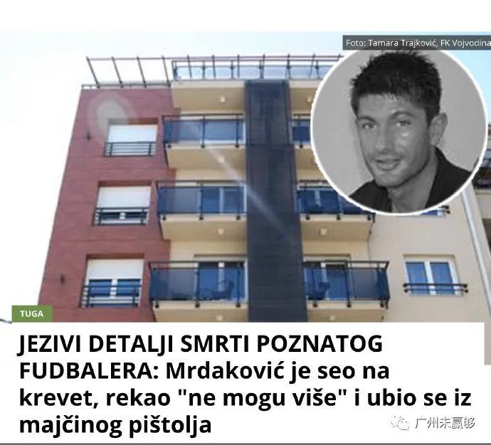 今天凌晨刚过零点,从塞尔维亚又传来了一则不幸的消息,据当地多家著名媒体透露,今年38岁的前中超外援米利安在贝尔格莱德租赁的公寓里开枪自杀身亡。据他的女友透露,当时米利安坐在床上,他拿起了枪说:“我不能再这样了”。女友从公寓逃了出来报警,当警察赶到的时候,发现了一个著名足球运动员的尸体。