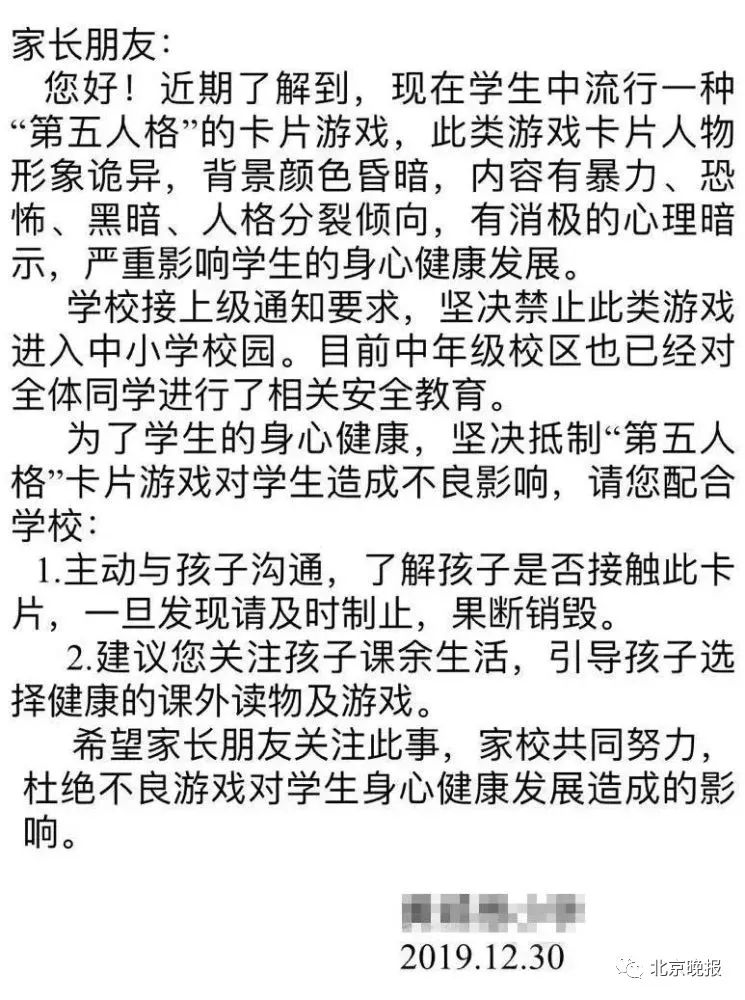 “此类卡片人物形象诡异……有消极的心理暗示,严重影响儿童青少年的身心健康发展。”“请各位家长主动与孩子沟通,是否接触此卡片,一旦发现,及时制止,教育孩子果断销毁。”