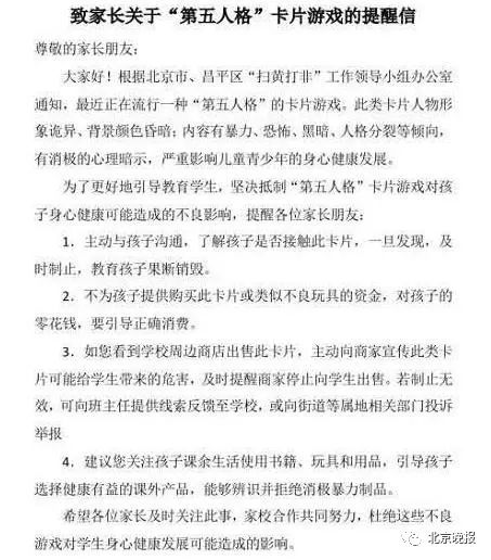而昌平区扫黄打非办公室工作人员表示,最近确实发布了这样的通知,但只是提醒、建议性质,家长也不用太过紧张。孩子真的买了、玩了卡牌,也不会受到什么处罚。
