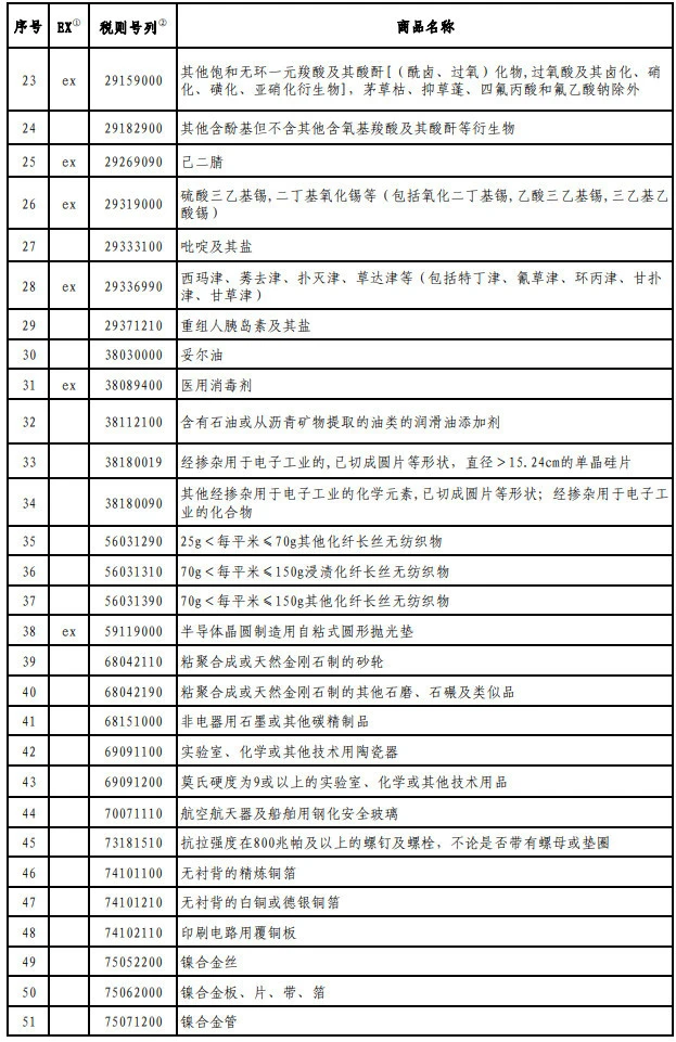 第二批对美加征关税商品第二次排除清单