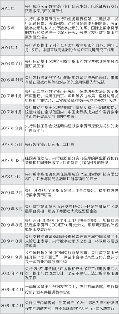 表:中国央行数字货币研究进展
