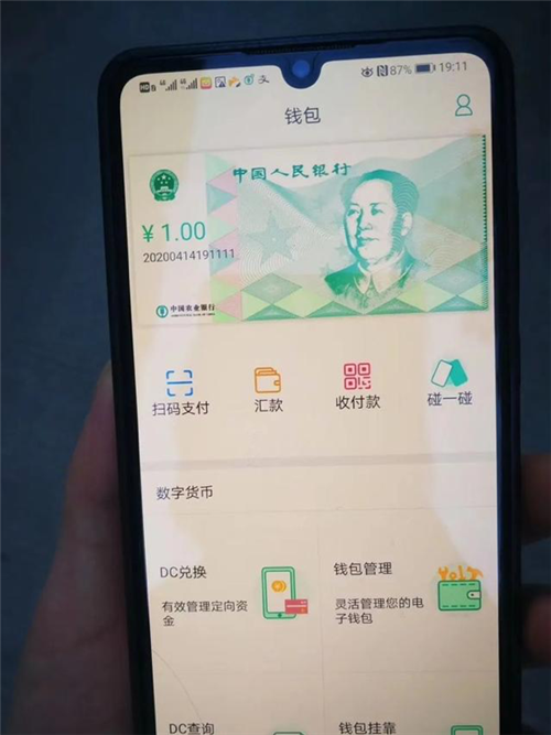 网传农行数字货币(DC/EP)钱包截图