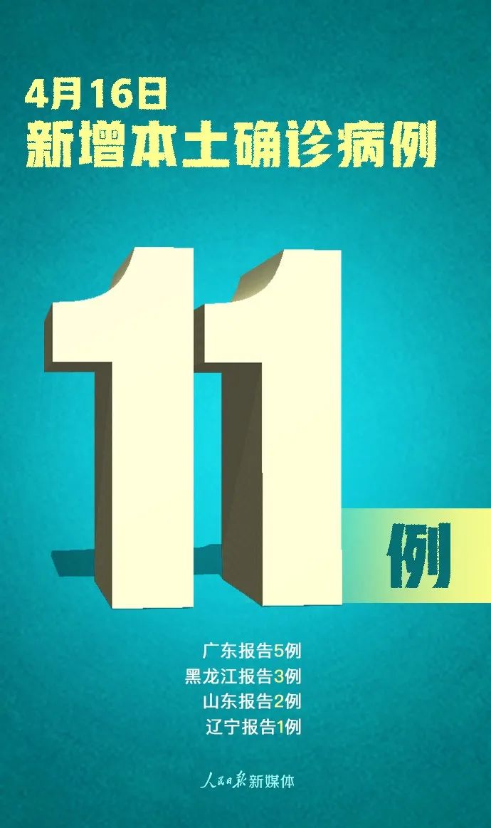 据国家卫健委最新通报,4月16日0—24时,31个省(自治区、直辖市)和新疆生产建设兵团报告新增确诊病例26例,其中15例为境外输入病例,11例为本土病例(广东5例,黑龙江3例,山东2例,辽宁1例);无新增死亡病例;新增疑似病例3例,均为本土疑似病例(黑龙江2例,内蒙古1例)。