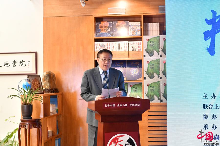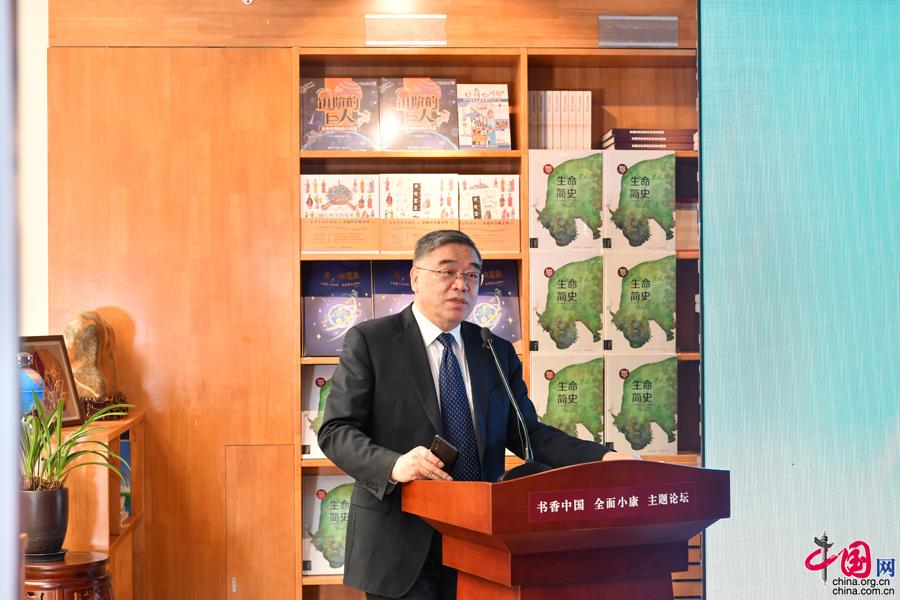 原国家新闻出版广电总局副局长、中国出版协会常务副理事长邬书林担任主持人,他在开场致辞中提到,“推动书香中国的构建,推进全民阅读战略的实现,是全面建成小康社会的应有题中之义,是扶贫扶志扶智相结合的重要支撑,是出版大国走向出版强国的必然要求,是出版共同体的初心所在、使命所在”。