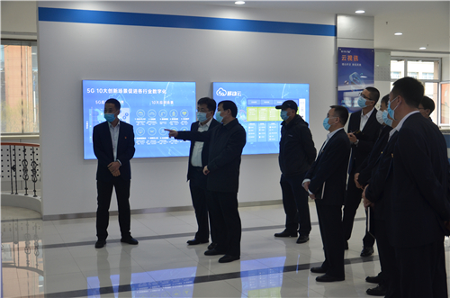 杨廷双一行首先参观了该公司大同街营业厅,在5G演示区体验5G与4G网络对比情况的现场演示,了解5GVR互动、5G游戏、5G高清视频、5G视频彩铃等移动5G技术与应用。在该公司智慧政企展厅,杨廷双参观5G网络下的十大创新场景及政务云、智能警务、智能直播、智能医疗、数字化农业等实际应用案例。