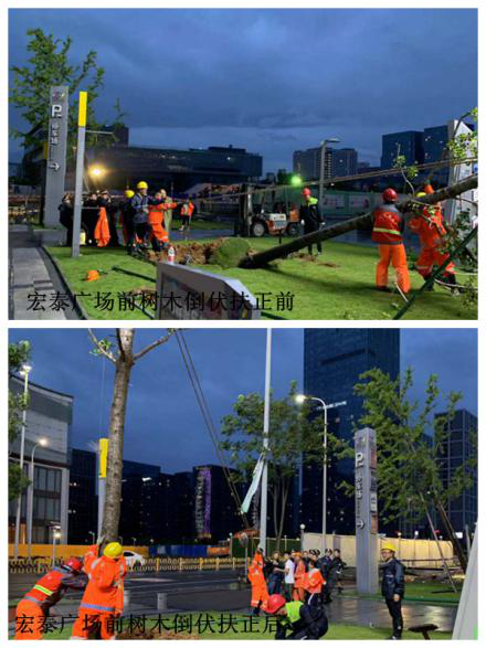 园林行业累计修剪树枝20941株,完成支撑加固28477株,应急加固12350株;巡查发现树木倒伏6469株,扶正加固6395株,其余正在抓紧处置;清理残枝等垃圾2920吨;排除紧急险情172处,受理热线184起,抢修绿地设施147处;目前道路基本畅通,暂未发生人员伤亡事件。