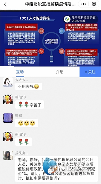 公益直播课上,大家都非常积极地提问,得到了3000多人次的一致好评,给企业的税收优惠带来了实质性的帮助,呼吁以后此种形式的公益课要多开。除了线上解答之外,因时间原因,还有很多企业的问题没得到解决,因此园区建立了线下答疑群,有财税专家在线即时免费解答大家的疑虑,真正做到了全方位 无死角的为企业服务。