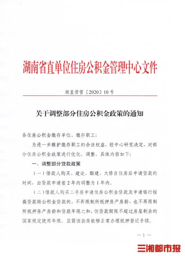 湖南省直单位住房公积金管理中心对部分贷款及提取政策进行了调整:借款人购买二手房申请公积金贷款及申请银行贷款转公积金贷款的,不再限制所抵押房产房龄。据悉,调整后的政策规定,从今年5月1日起施行。
