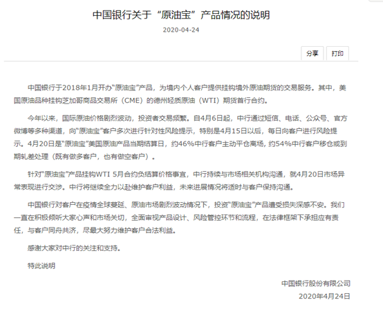 4月24日晚间,中国银行再次针对近期市场关注的“原油宝”产品情况作出说明。