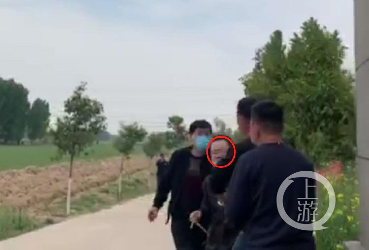▲4月21日下午,河南原阳县一处陵园路口,记者(红圈)在进行采访时遭遇多名不明身份人员暴力拦截。图片来源/视频截屏