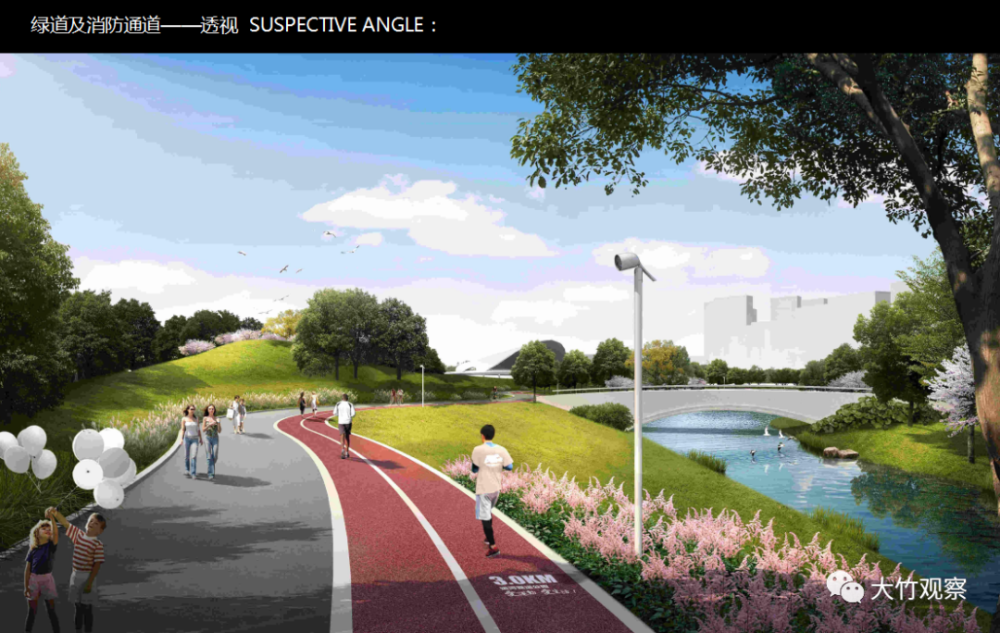 建设生态科学及人文精神的城市形象展示及市民休闲相结合的活动空间,大竹有着深厚的人文历史背景,设计秉承传统造园中山水营造空间关系,将大竹的”竹”文化采用文化同构的设计手法来进行展示,把握项目基地,山地,平地及河道的空间关系,延续发扬大竹人民坚韧的文化精神内涵,体现大竹当地悠久的历史文化,强化城市的整体形象,提出“新城古韵,北湖竹庭”的设计概念,着力打造“一步一景,千年大竹”的规划蓝图,在总体设计原则及定位的指导下,坚持“景观先行,环境为本”的指导思想,以“筑台理水,草木营造”为理念,重塑基地格局,构建“一廊,三轴,多节点”的总体格局,形成“历史,文化,生态,新城,景观”五位一体的绿色空间。