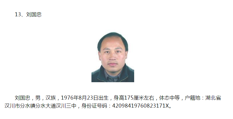 公安部13名A级通缉令逃犯