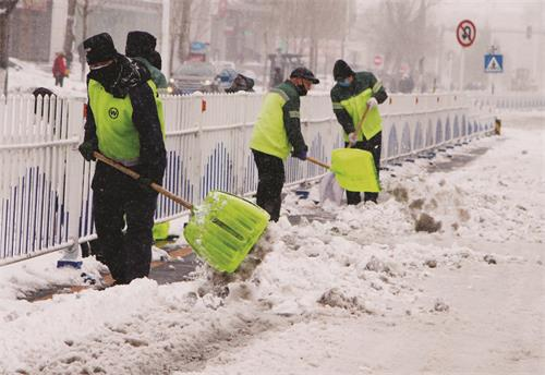 据了解,20日夜间至21日,城管环卫部门共出动人员4700余人次、250余台车辆,对全市主要街路的积雪进行清除,以最快的速度恢复全市道路交通秩序。21日,中心城区环卫部门采取以站为单位,人机配合的形式对路边石以下堆存和人行道积雪进行清运。此外,当地环卫部门还将继续对没有物业管理的小区,及各小区推出堆存的大雪堆进行清理清运,全力打开车行道路面,防止交通拥堵。