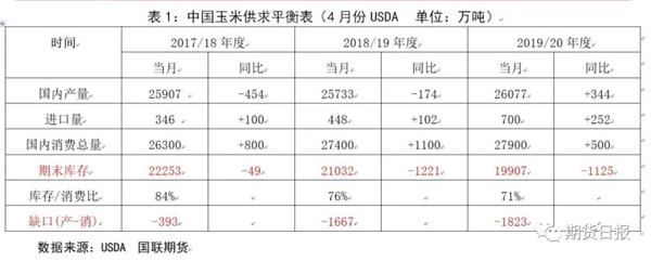 从表1看,2017/2018年度我国玉米消费总量提高了800万吨为26300万吨;2018/2019年度增长了1100万吨为27400万吨;并预估2019/2020年度将提升500万吨为27900万吨。