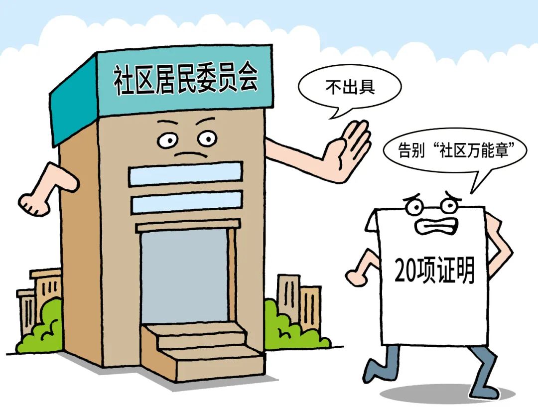 此前,有调查显示,一些社区变为名副其实的“证明大本营”,社区公章沦为“万能章”,常开的证明多达60多项,开证成为社区工作人员的不能承受之重。为社区拆解不必要的负担,势在必行。