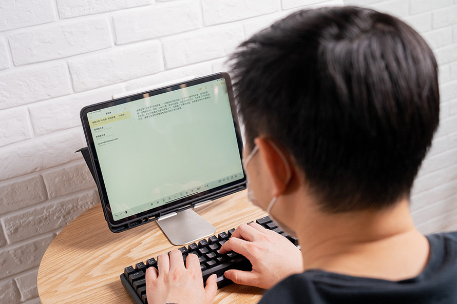 值得一提的是,黑爵K680T支持Fn+Q,Fn+W和Fn+E在三个配对设备之间来回切换,进一步优化了这款键盘无线连接的方便性,而且这款键盘在安卓、iOS,Mac和Windows系统设备上都能适用,尤其是在iPad更新到最新版本后办公的性能显著增强,我基本就将这款键盘与自己的Windows轻薄办公本和iPad Pro之间来回切换使用,一个键盘两个生产力工具都用上了。