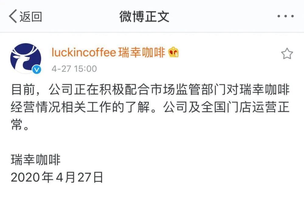 对此,小编采访瑞幸咖啡相关负责人,截至发稿前并未有任何回应。不过,被热议的同时,瑞幸咖啡通过官方微博发布消息称,公司正在积极配合市场监管部门对瑞幸咖啡经营情况相关工作的了解,公司及全国门店运营正常。
