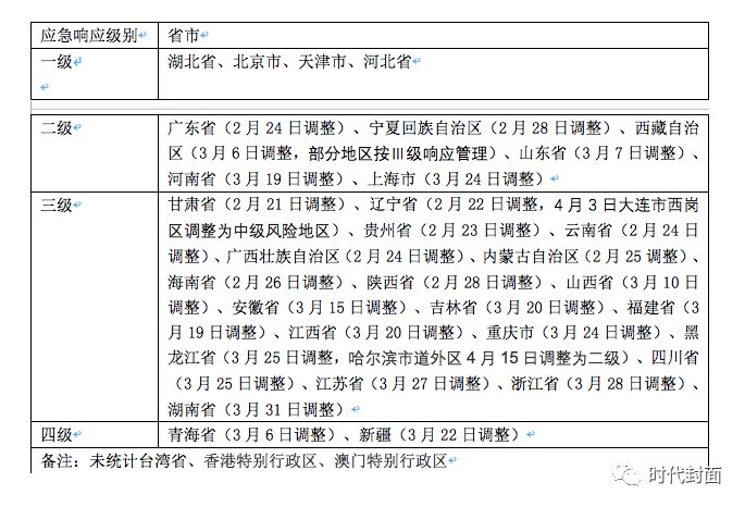 截止4月28日各省响应级别