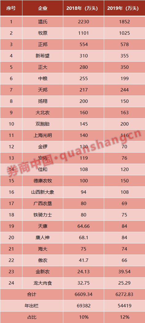 前20名养猪巨头在快速成长,市场份额在大幅攀升