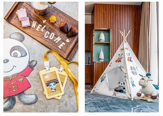此外,酒店还为孩子们准备了儿童游泳包(Kids Pool Bag),包括一套儿童专用洗发水、沐浴露、身体乳液,以及橡皮小黄鸭。露营的孩子们甚至可以在帐篷外挂上“ZZZZ”的卡片,独享自己的小天地。同时,涂色书和印花卡也会让孩子们的体验升级,通过收集印花贴纸获得“探险家证书”,在退房时还能获得一份特别的礼物。