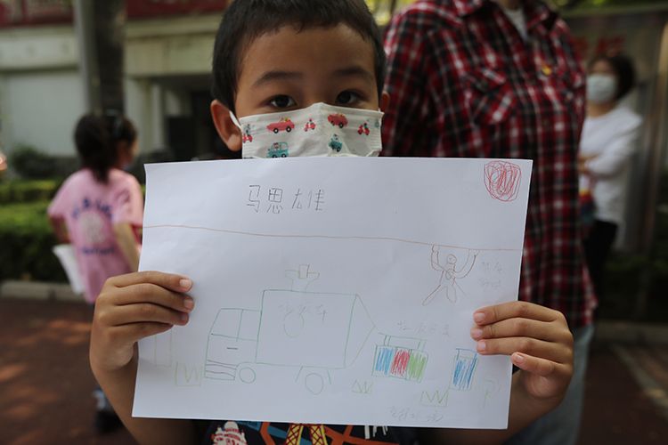 东直门街道清水苑社区,小朋友现场创作垃圾分类主题画。