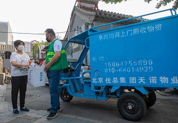 朝阳门街道,一辆特殊的快递车驶入社区,这辆快递车是上门“取件”的,取的是可回收垃圾。通过居民电话预约回收、取件车上门取件、向居民支付费用、统一送到厢式货车集中外运的步骤,完成生活垃圾回收工作。