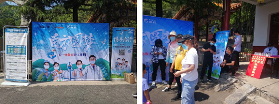 尧山福泉、福泉大酒店防疫工作人员严阵以待,游客到达酒店门口需测量体温显示合格、出示安全健康码并佩戴口罩后方可办理入住,景区、酒店门口树立防疫信息牌,坚决做好防疫知识宣传。