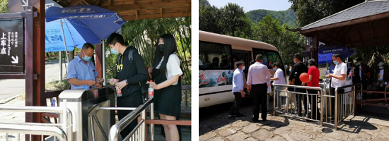 五一小长假一开始,尧山风景区迎来首批游客,景区现严格落实国家抗疫情行动,按照30%客流承载量,采用全网实名制购票,并在山门检票处设置体温测量登记处,每位游客需扫描登记健康码进入景区,全面保证每位游客的健康安全。