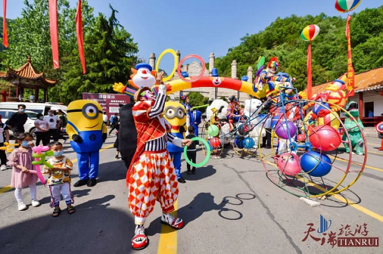 在尧山索道站、玉皇顶等地还有多种游客活动,大小朋友们纷纷参与其中,一同感受小丑表演的魅力!