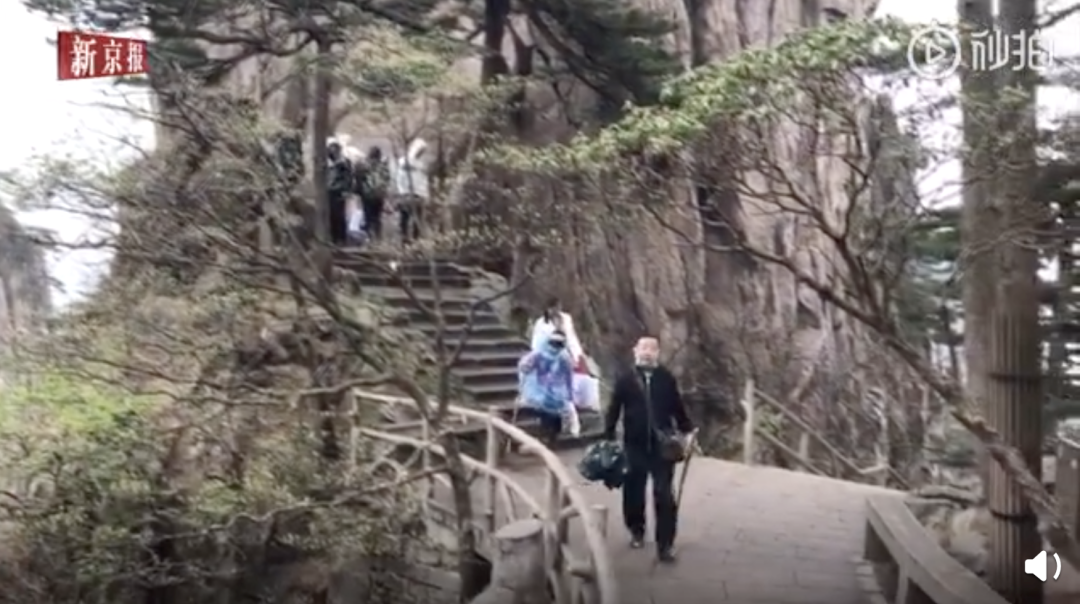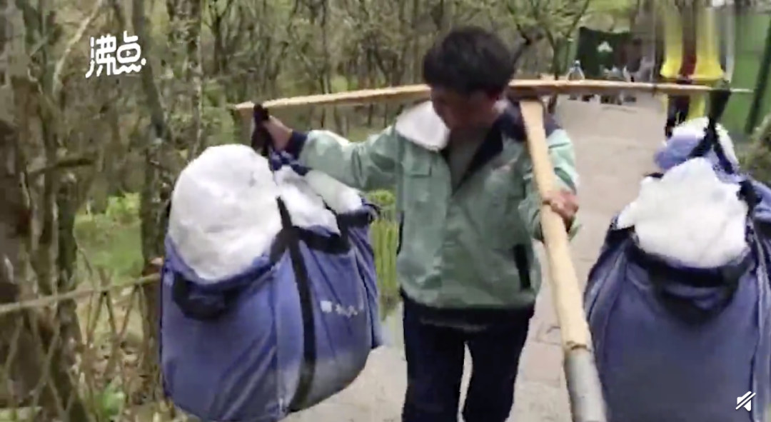 一位挑山工从腊月初五开始上班,到现在四个月来他每个月收入都减少了三四千。原本两三个人挑一个酒店的床单物资,变成了现在一个人挑两三个酒店。