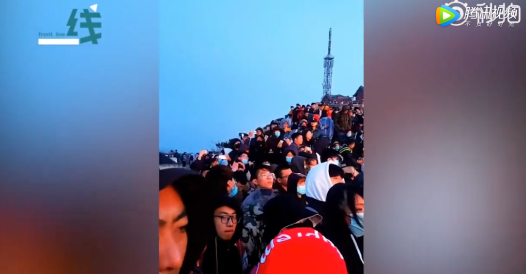 5月1日上午一段视频在社交网络热传,视频显示,在泰山风景区,五一为看日出游客排队等候登泰山,景区现场开启人从众模式,现场拥挤不堪。