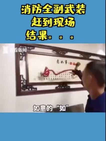 女子报警家中出现红色长蛇消防员带着工具来抓 结果……近日,河南南阳一女子报警称家中出现一条红色长蛇。消防员携带抓捕工具赶来,在路上一边走一边分析情况:颜色越艳越有毒,估计是条毒蛇。消防员到达女子家中的时候,气氛一度非常紧张。结果发现,这条“红蛇”其实是女子家里墙上装饰画里掉下来的“如”字。