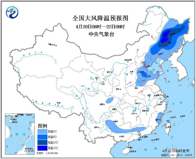 受强冷空气影响,预计未来三天,华北中东部、东北地区大部、黄淮北部、西南地区东部、华南北部等地的气温将下降6~10℃,其中,黑龙江西南部、吉林西部等地的部分地区降温达12℃以上,上述地区并伴有4~6级、阵风7~9级的大风。华北中北部局地有扬沙或浮尘天气。伴随着大风,上述地区的气温也将出现6~10℃左右的下降,局地降幅甚至可达12℃以上,像是哈尔滨、长春等地,昨天的最高气温还在20℃左右,冷空气一来,可能直接跌至到2~5℃,降幅或超15℃!