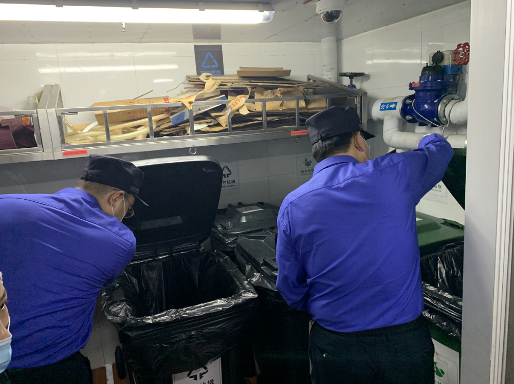 今天上午,记者跟随市城管执法局前往丰台区大成路翠微大厦开展垃圾分类检查。