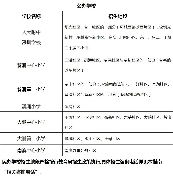 2.非大鹏新区义务教育阶段学校小学新生招生对象;