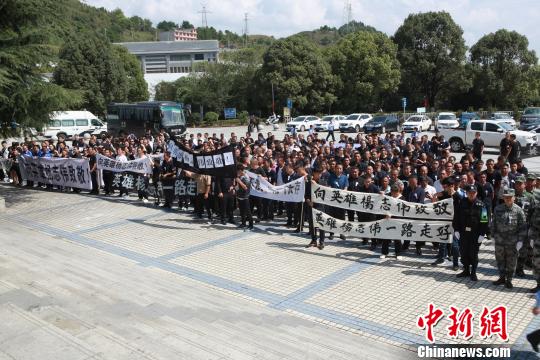 中新网贵阳10月4日电 (记者 刘鹏)10月4日下午,因公牺牲警务辅助人员杨志伟追悼会在贵阳市景云山殡仪馆景云厅举行。昔日的领导、亲属、战友们以及市民怀着无比悲痛的心情在这里泪别英雄杨志伟。